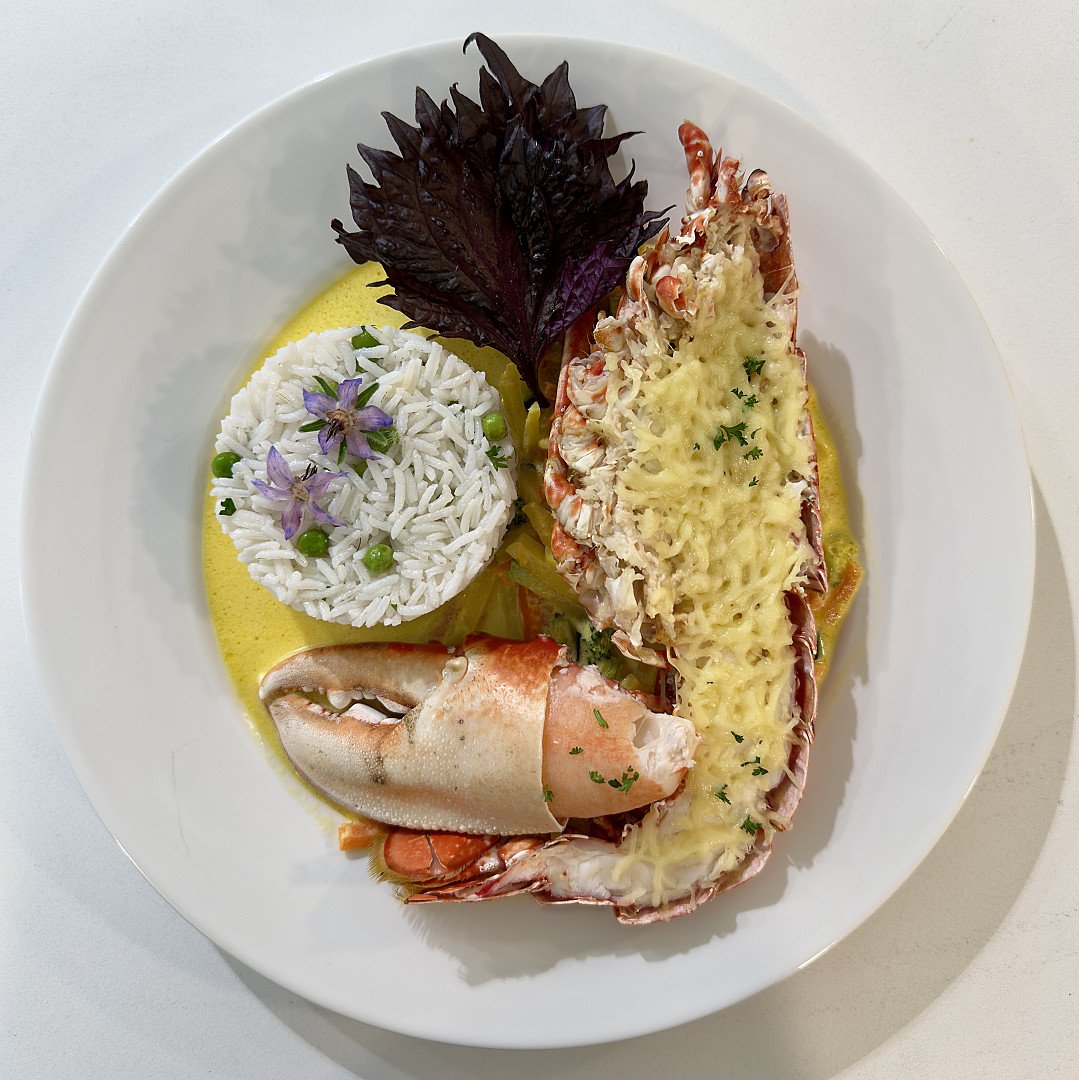 - Fêtes : Demi homard gratiné, sauce safranée & riz parfumé