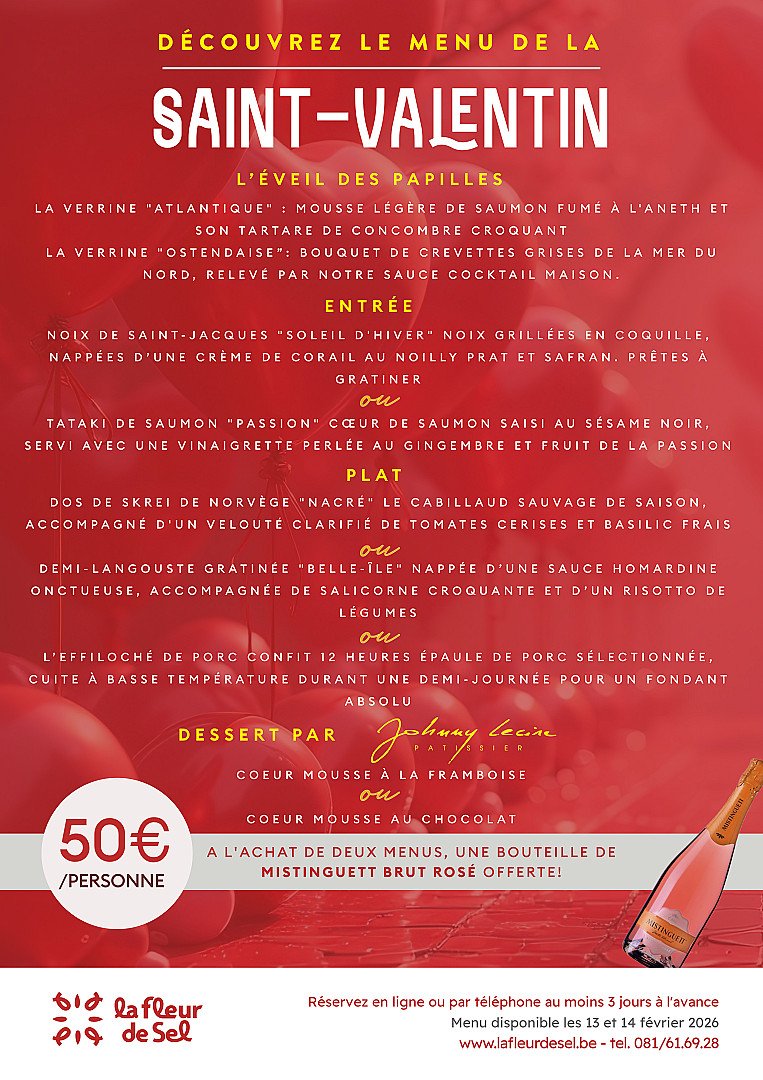 Commandez au moins 3 jours à l'avance. Menu disponible les 13 et 14 février 2026.